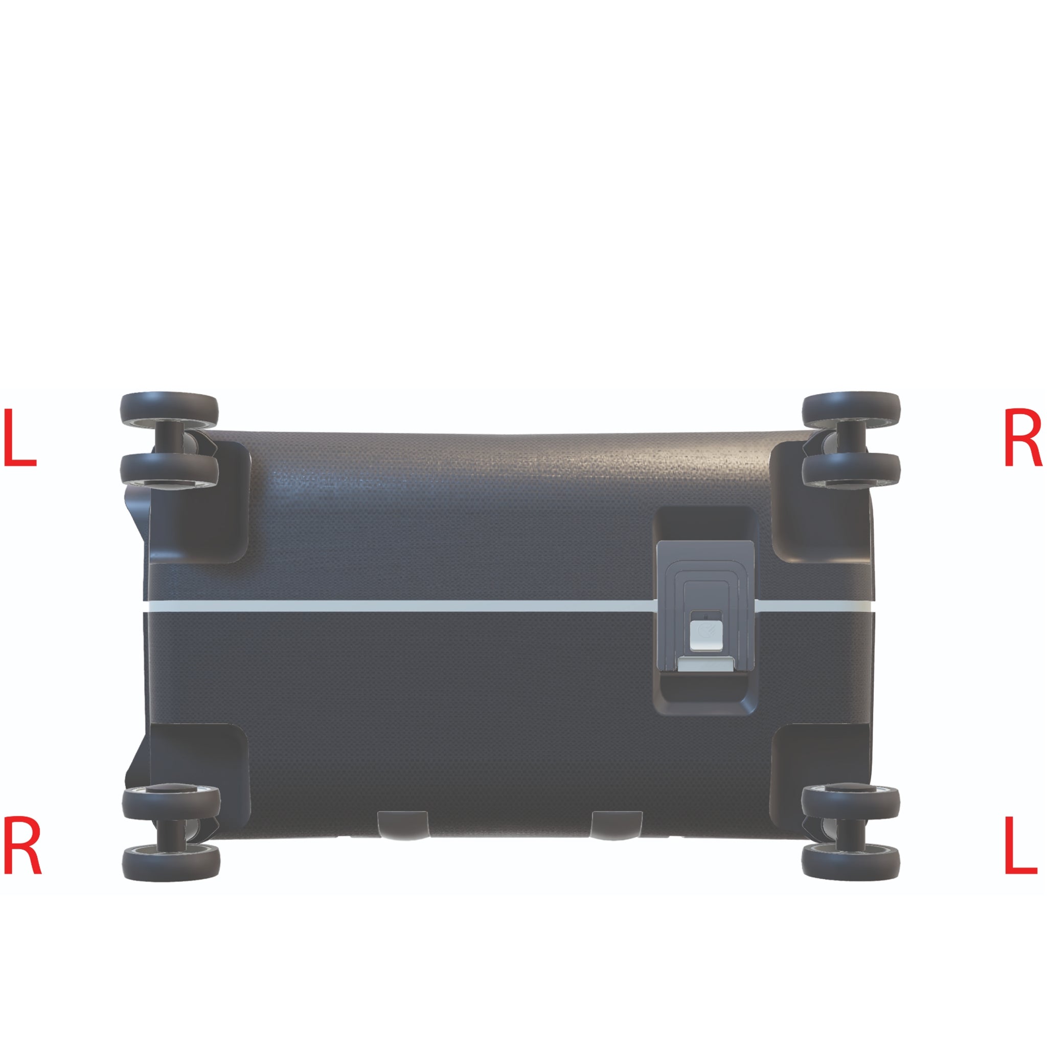 Use the images below to determine if a Left (L) or Right (R) wheel needs replacement. The second image shows the suitcase bottom when lying on its backside with the logo facing upwards. Pay attention to the wheel orientation in the product description above.